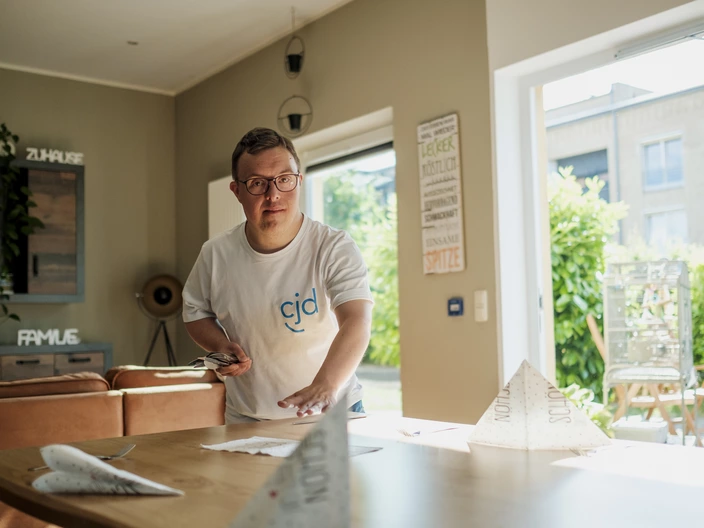 - Stellen von Tischen und Stühlen nach einem Plan, Eindecken und Dekoration